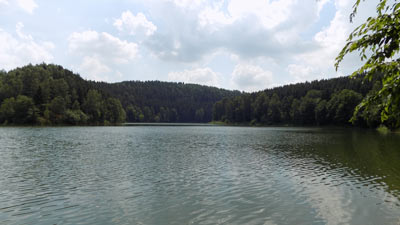 Ab jetzt finde ich das Lutherzeichen wieder und ich fühle mich auf dem Weg richtig gut aufgehoben. Gleich zwei Begleiter zeigen mir ab jetzt den Weg. Zum einen bleibt es bei dem gewohnten Wegzeichen grüner Balken und zum anderen das grüne "L" vom Lutherweg. Der Weg verläuft überwiegend über Splitt. Kurze Wald - und Wiesenwege werden ebenfalls betreten, sie bleiben aber wirklich die Ausnahme. Die Wippertalsperre kommt nach einer langen Wegstrecke immer näher. Ich komme zum Wipper-Einlauf. Da ich mich etwas oberhalb der Wipper befinde, kann ich den Einlauf in die Talsperre sehr gut erkennen. Der Boden im Flussbett ist matschig. Hohe Schilfpflanzen ragen zum Himmel. Fischreiher, es sind tatsächlich vier, stehen starr und warten auf den günstigen Moment zum Beute machen. Frösche quaken erst sehr laut, als ein weiterer Fischreiher sich nähert, wird es ganz still. Nur die Grillen zirpen noch im Schilf. Etwas weiter finde ich eine schöne Stelle, wo ich direkt zum Wasser komme. Ein Angler sitzt hier und hat seine beiden Ruten für einen Fang ausgeworfen. Nach einem kleinen Smalltalk erfahre ich, dass er es auf Karpfen angelegt hat. Die Stelle ist sehr idyllisch und so verweile ich auch hier. Eine Sitzbank bietet direkt am Ufer eine Sitzmöglichkeit, die ich natürlich nutze. Mein nächster Anlaufpunkt ist die Stempelstelle 219 der Harzer Wandernadel. Nachdem ich an einer umgestürzten Tanne zwischen den Tannenzeigen hindurch gehe, komme ich am nächsten Uferbogen der Talsperre an der Stempelstelle an. Selbstverständlich wird diese in meinen Wanderpass eingetragen. Wieder einmal lädt hier eine Bank zum Verweilen ein. Nur möchte ich zu meinem Etappenziel und so gehe ich weiter. Auf der anderen Seite der Talsperre höre ich Jugendliche, die im Wasser der Talsperre toben. Die eine oder andere Bank mit herrlicher Aussicht über die Talsperre verlockt immer wieder sich zu setzen, jedoch bleibe ich standhaft und folge dem Lutherweg. Unterwegs treffe ich auf ein Informationsschild, wo die Vogelwelt dieser Landschaft erklärt wird. Etwas weiter komme ich auf die Staumauer der Wippertalsperre. Diese Talsperre ist zwar nicht sehr groß, aber ihren Reiz hat sie allemal. Nach einem kurzen Fotoshooting geht es den Weg links neben der Staumauer runter. Einige nehmen auch den direkten steilen Abstieg. Mir ist das zu gefährlich und ich möchte auf Lutherspuren wandern, also folge ich dem längeren Weg. Unterhalb der Staumauer hat man einen eindrucksvollen Blick zur Staumauer hinauf. Ich jubele, da die heutige Etappe geschafft ist. Doch was mache ich heute noch und vor allem, wo übernachte ich? So einen Fernwanderweg geht man ja nicht unvorbereitet, also hab ich natürlich die Lösung zu Hand. Zelten ist ja leider offiziell in der Natur verboten und die Schutzhütten, die auf dem Lutherweg aufgestellt sind, eignen sich nicht unbedingt zum Übernachten. Also, zunächst mal an der Wippertalsperre reichlich erholen und entspannen. Später werde ich die Etappe 3 bis Wippra beginnen. Es sind von der Talsperre bis Wippra etwa 6 Kilometer. Im Hotel „Deutsches Haus“ habe ich für die Nacht ein Zimmer gebucht. Natürlich alles von zu Hause geplant und gebucht. Ich will zwar Abenteuer, aber wo ich meine Nacht verbringe, soll schon vernünftig geplant sein. So ist die 2. Etappe geschafft!